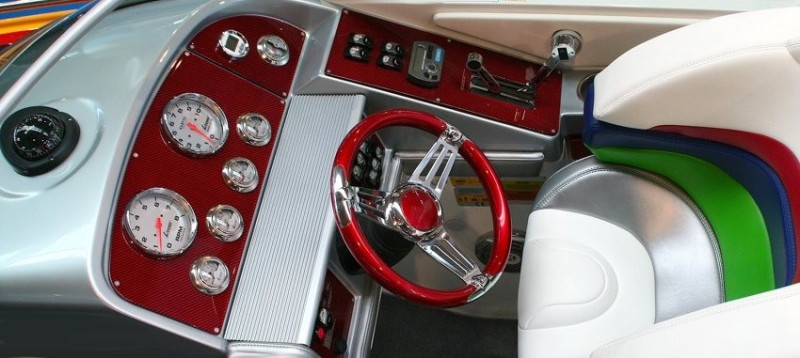 Carbon-Panel und Lenkrad in schwarz, blau, rot, gelb
