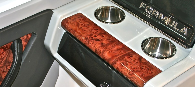 Armaturenblende aus Wurzelholz, gebürsteter Metall Umrahmung